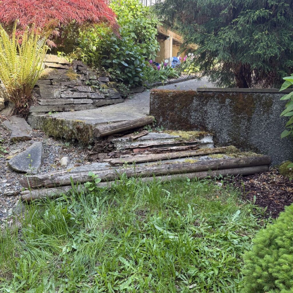 This homeowner has larger plans for their yard in the future, but needed a safe, reliable solution for their steps in the meantime. The existing landscape ties were removed to make way for a more durable fix.